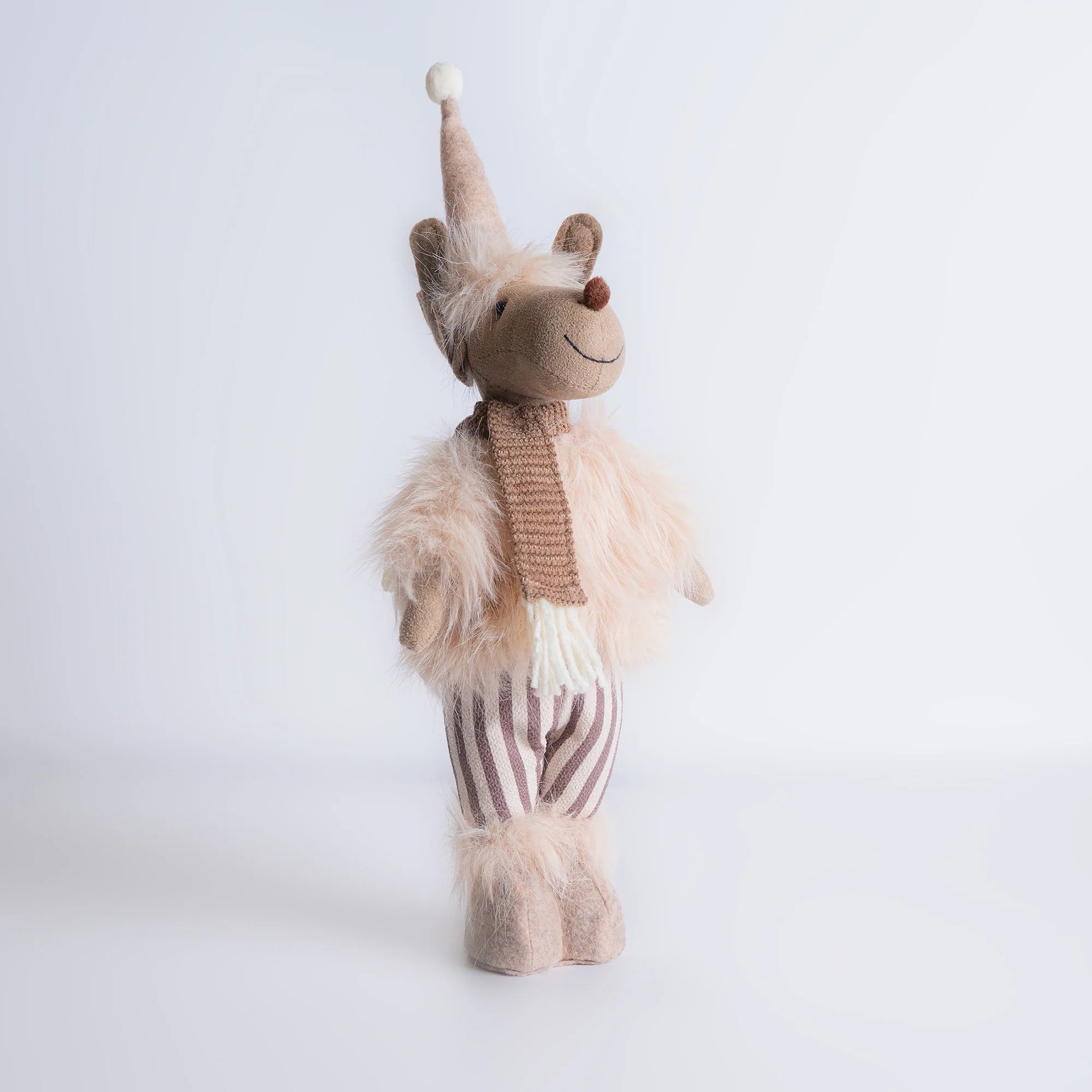 Agrega un toque de encanto navideño a tu decoración con nuestro adorable reno decorativo beige. Figura decorativa de reno con increíbles detalles de peluche, ideal para llevar la magia de la Navidad a tu hogar.