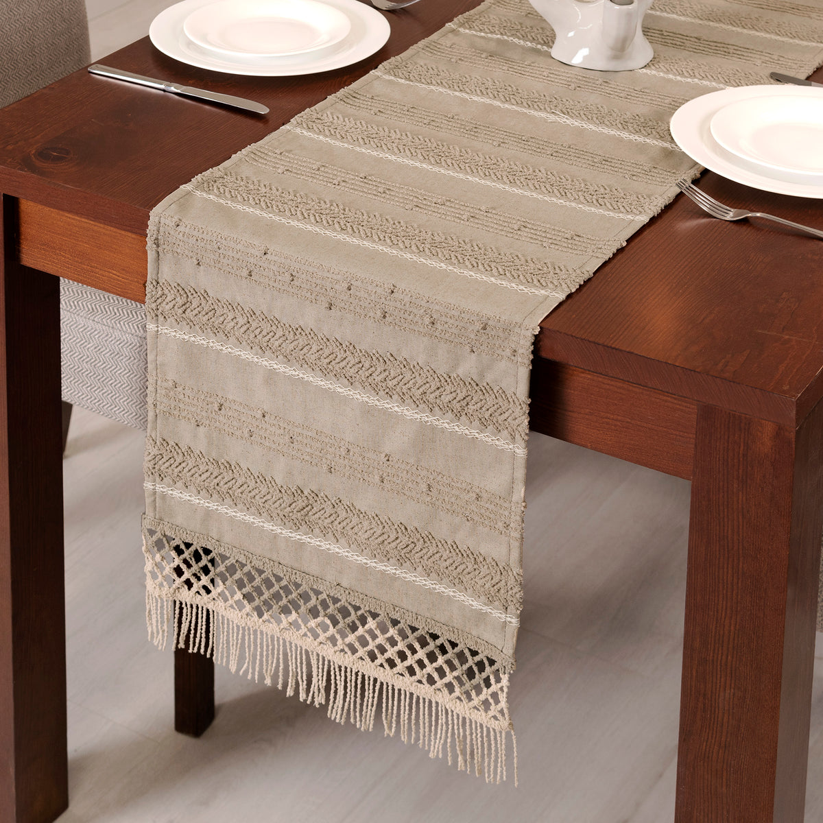 Camino de mesa con diseño bordado y guipiur, ideal para darle un toque decorativo a tu mesa.