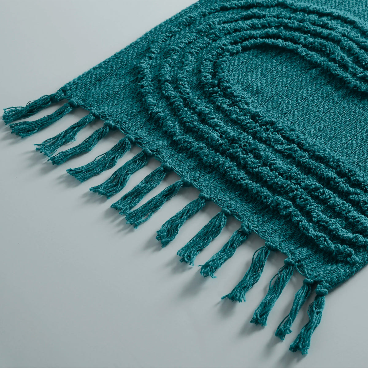 Viste tu mesa de elegancia y serenidad con el Camino de Mesa Mumbai Atlántico. Su color turquesa es ideal para elevar el look de tu comedor, mientras que su textura de relieve le dará el toque innovador que estabas buscando. Camino de mesa con diseño tejido 100% algodón, ideal para darle un toque decorativo a tu mesa.
