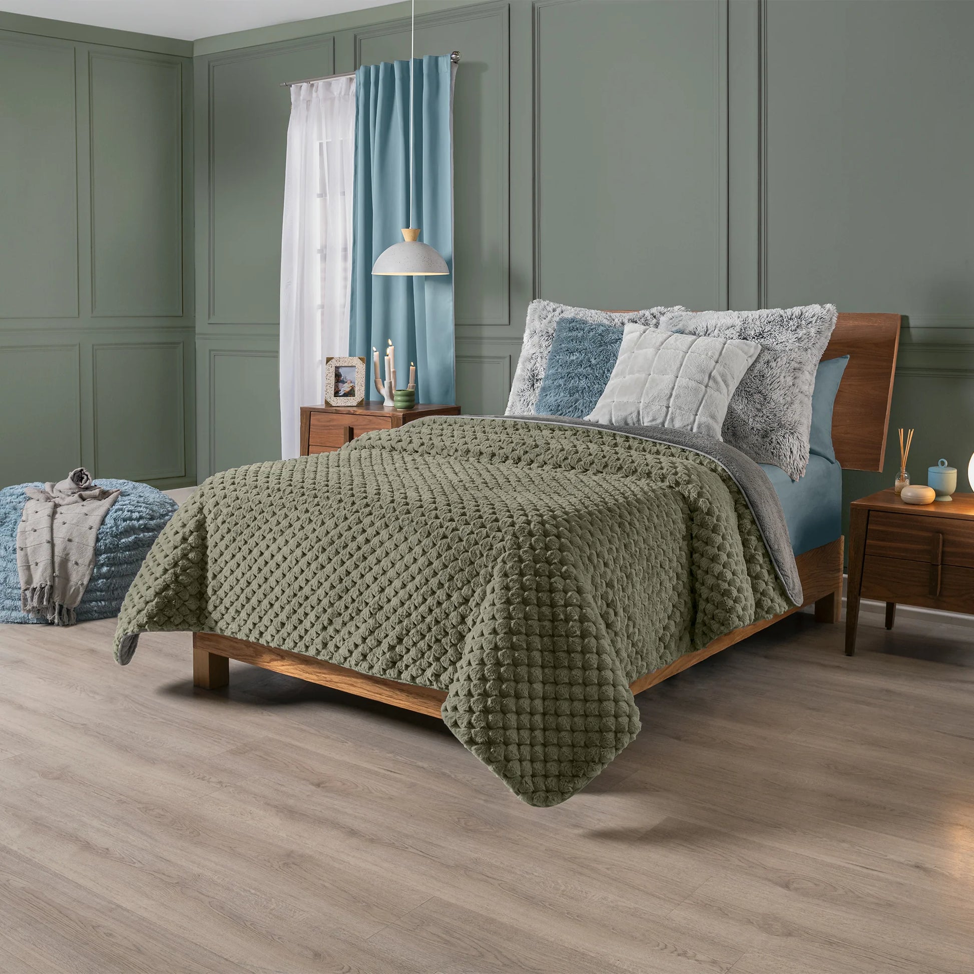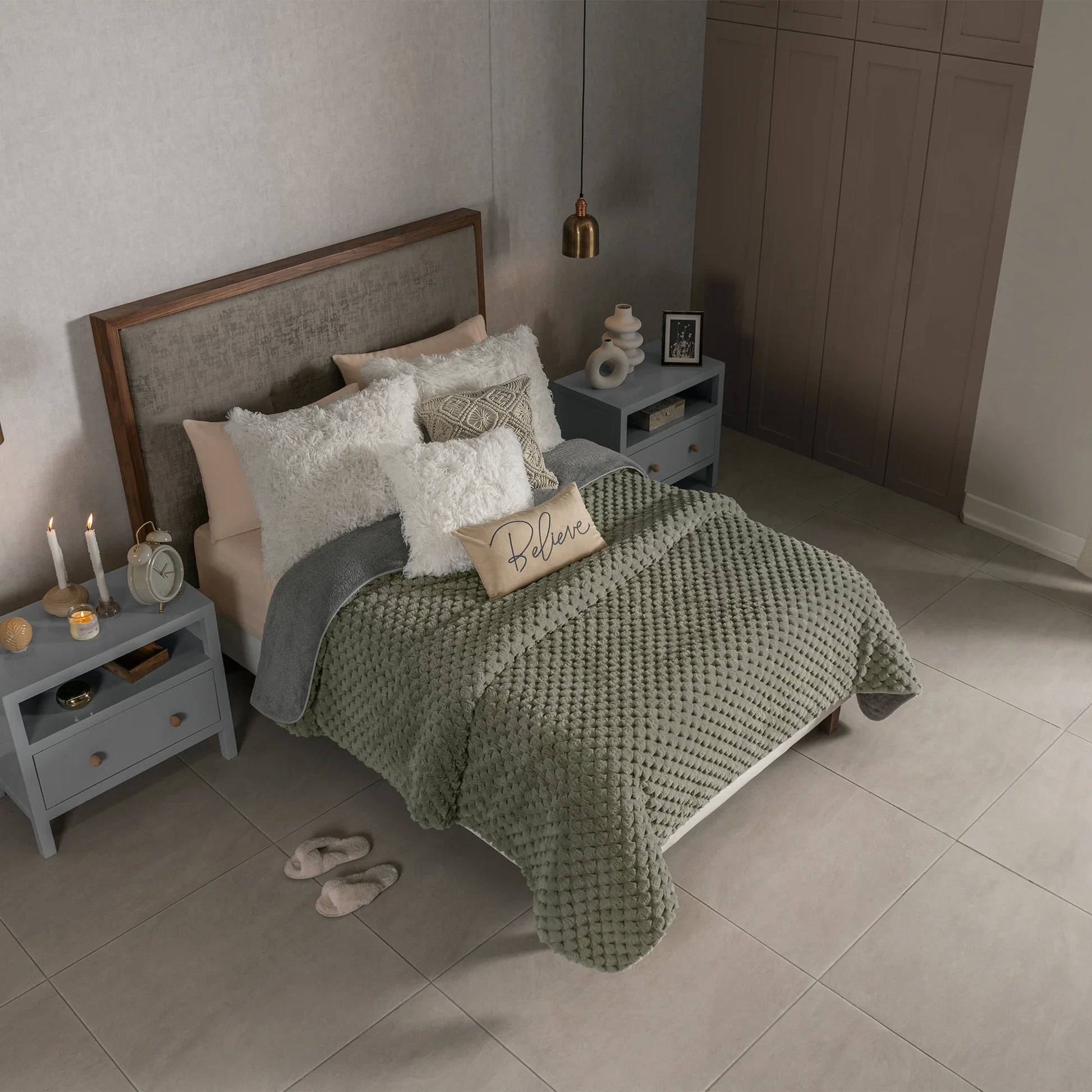 Cobertor everest con textura en relieve súper suave y reverso de borrega premium
