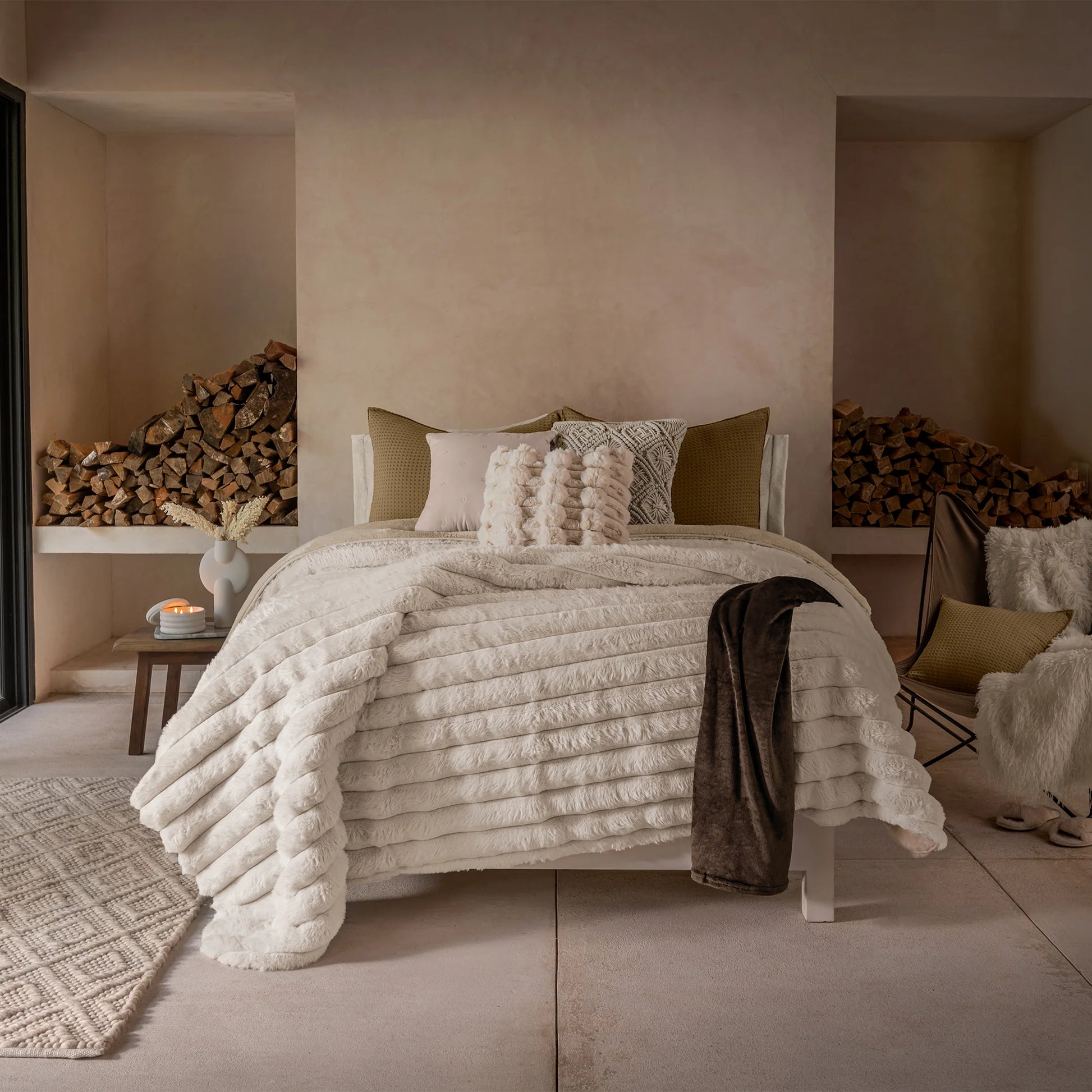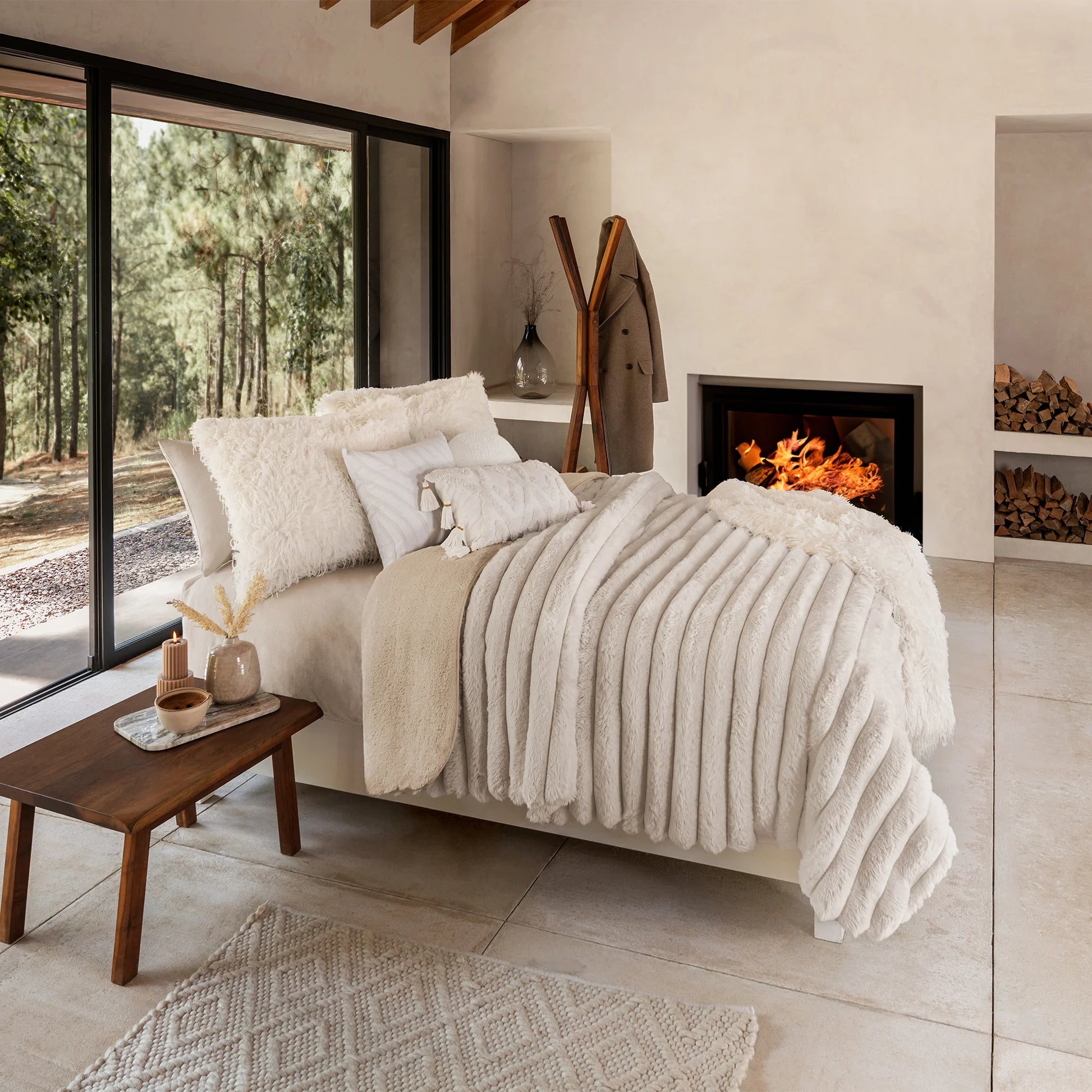 cobija de color neutro y atemporal que combina con múltiples estilos y eleva cualquier espacio con su look limpio y minimalista. Amplía visualmente las habitaciones y brinda una sensación de suavidad perfecta.