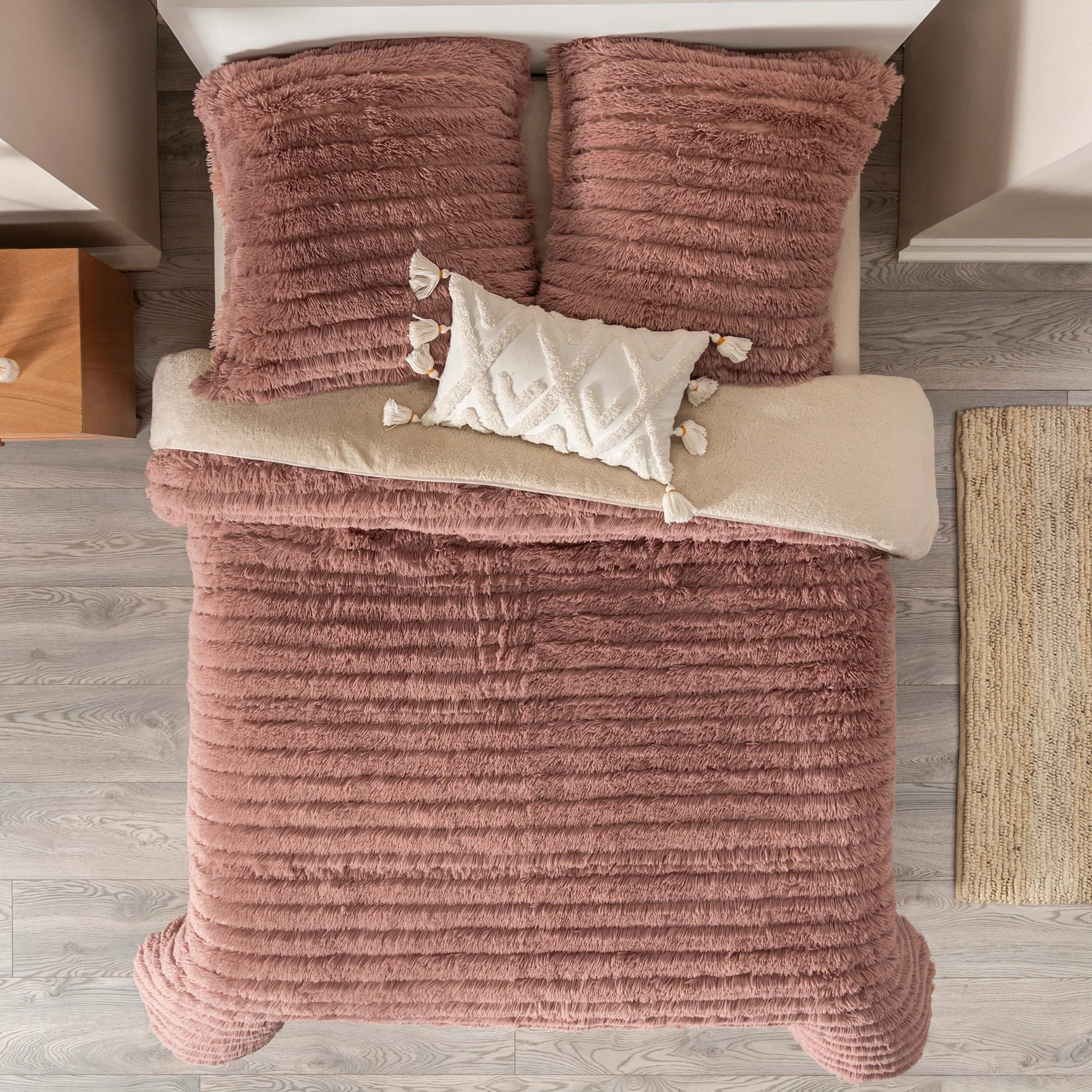 Cobertor everest de pelo largo con efecto acanalado y reverso de borrega premium.