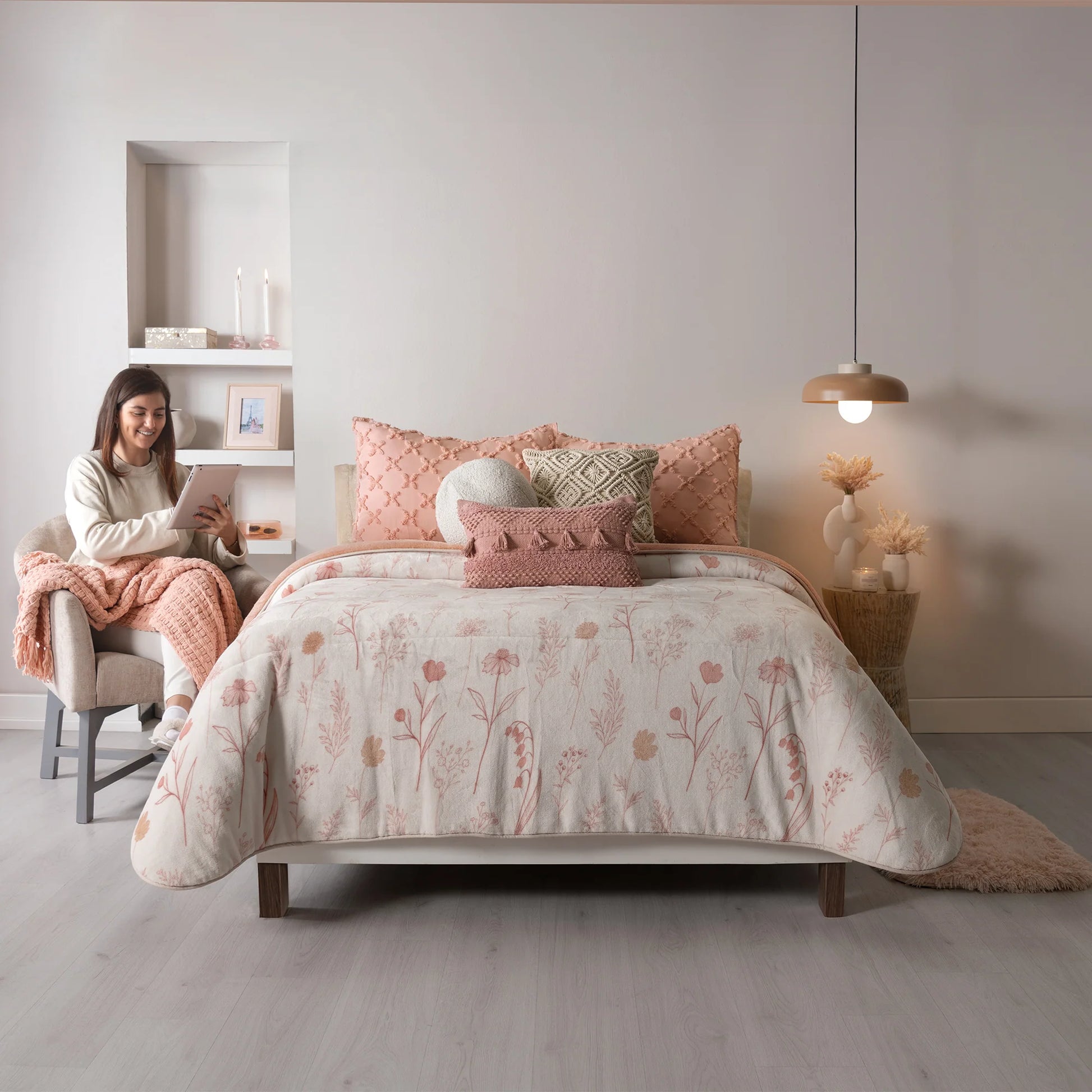 El Invernal Bremen presenta una combinación vibrante de rosa y coral adornado con un motivo de flores silvestres. Este diseño es perfecto para añadir un toque alegre y acogedor a tu dormitorio.