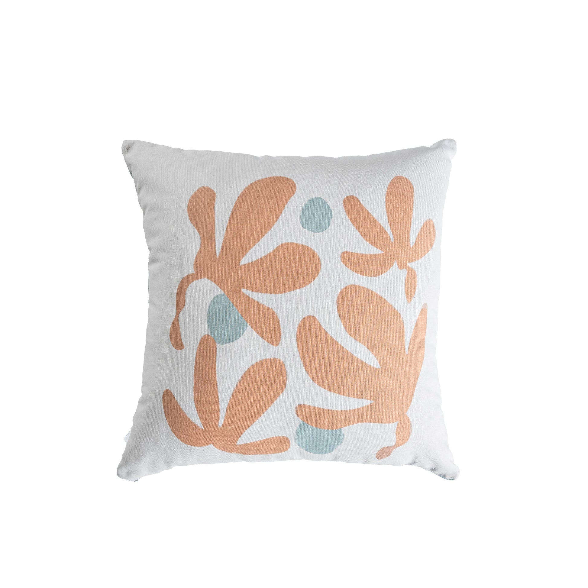Las líneas suaves y fluidas forman patrones orgánicos que dan vida al cojín. Las hojas abstractas, aportan un toque artístico y contemporáneo a la pieza, creando una sinfonía visual de armonía y estilo. Cojín cuadrado estampado de 2 vistas.