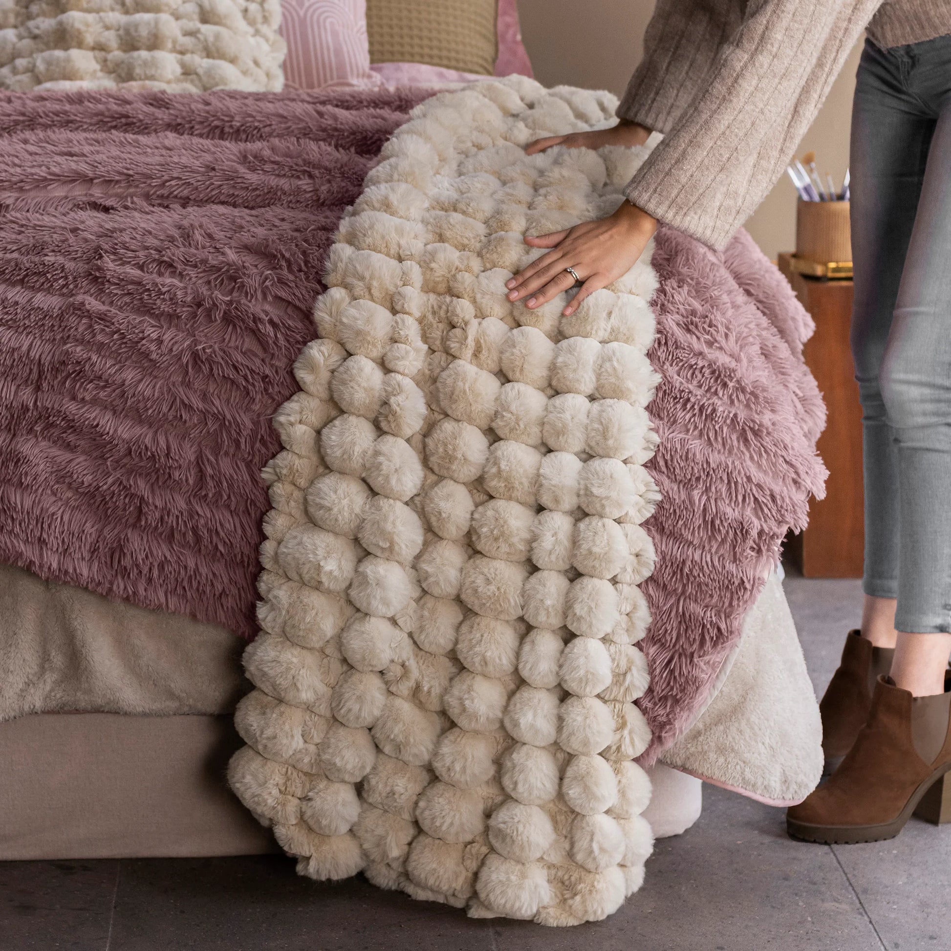 Frazada everest con textura en relieve súper suave y reverso de borrega premium