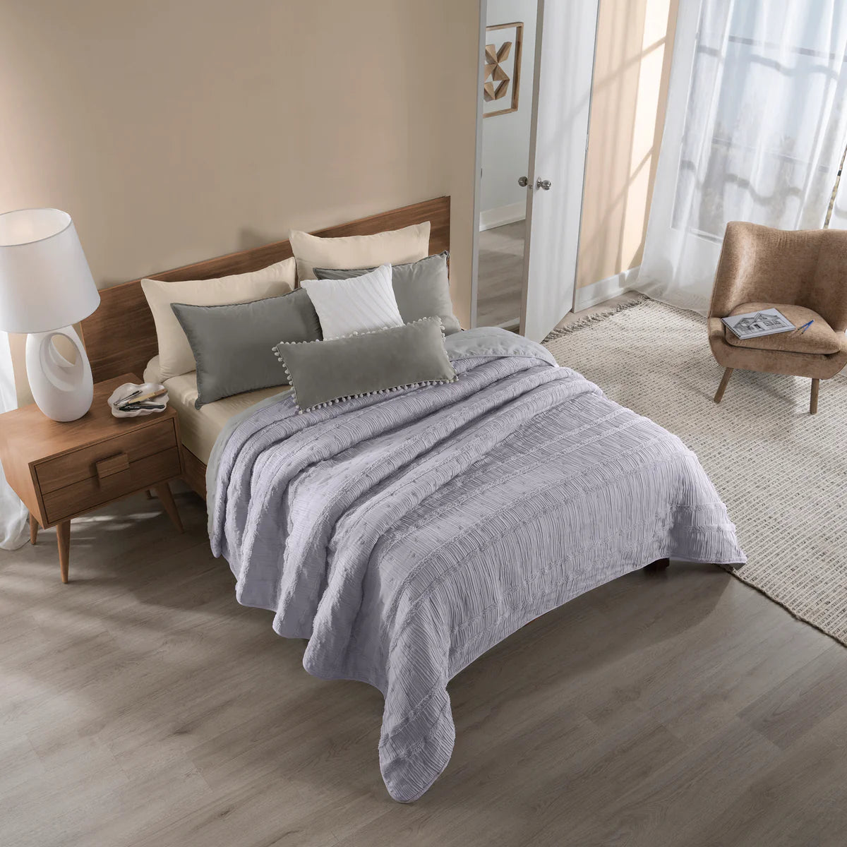 Edredón Verona combina elegancia y suavidad, aportando un toque cómodo a tu dormitorio. Su textura y plisado crea una sensación de profundidad y movimiento, mientras que su material suave y acolchado garantiza comodidad y calidez.