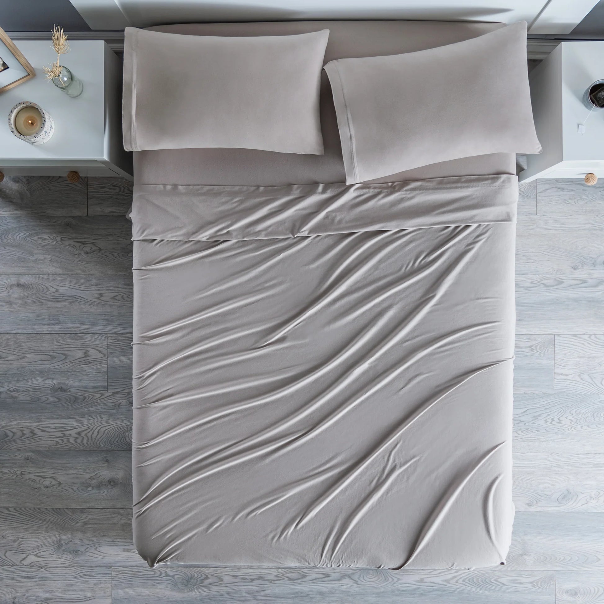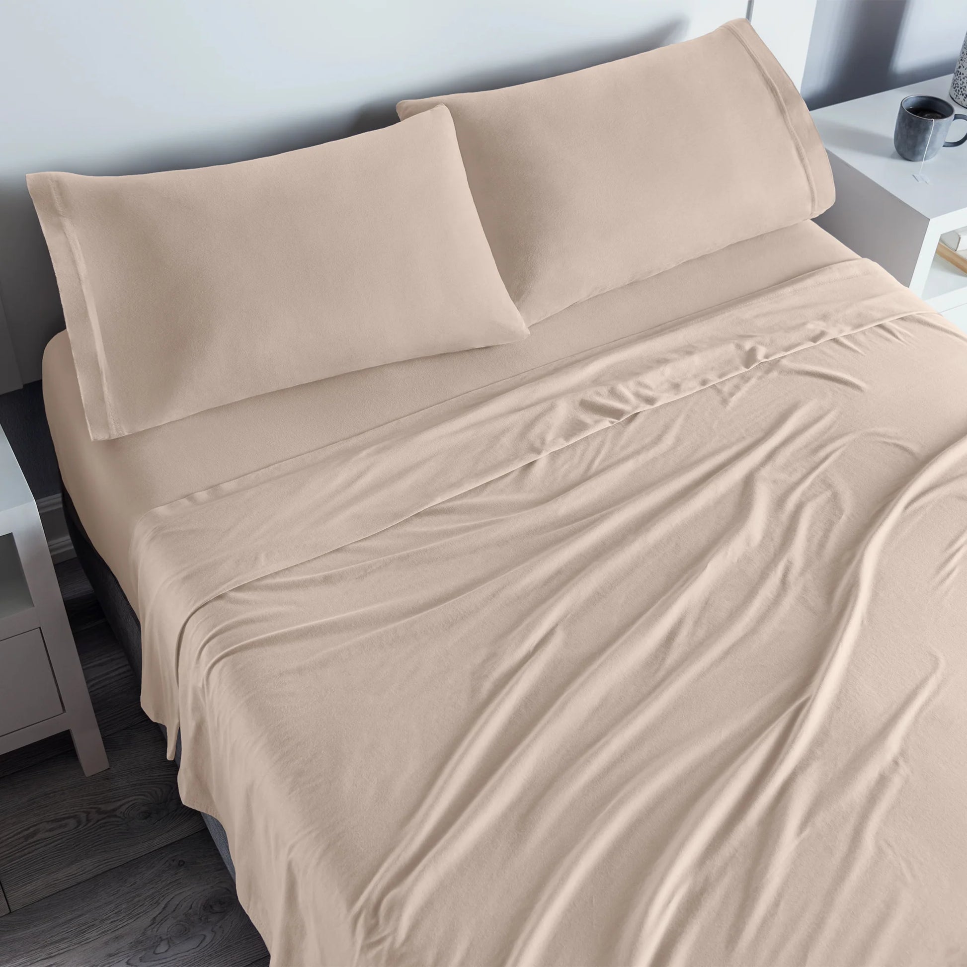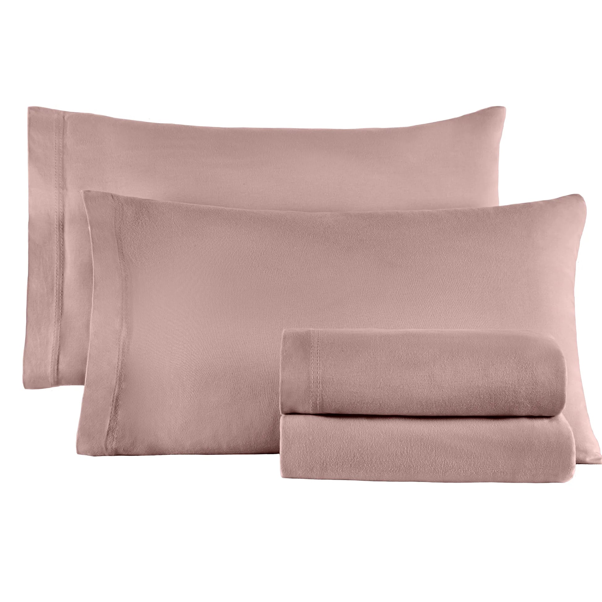 Sábanas 100% algodón con tejido de camiseta que se adapta a la temperatura corporal y brinda comodidad a tu descanso. Colores lisos ideales para combinar con tus edredones.