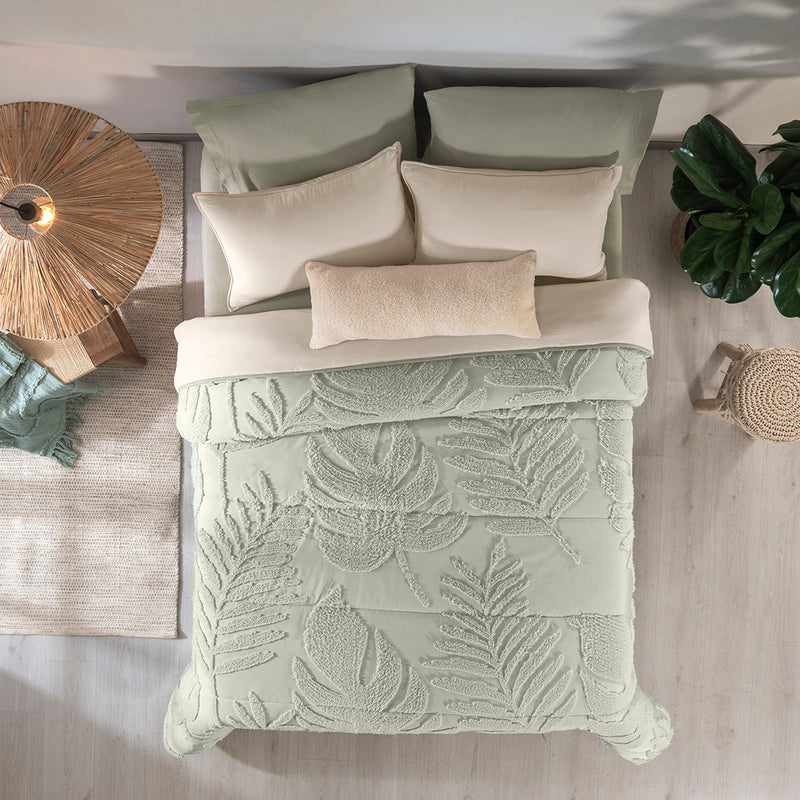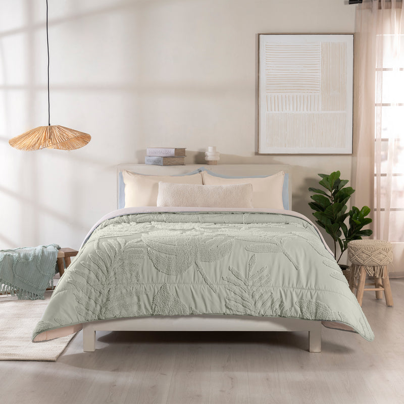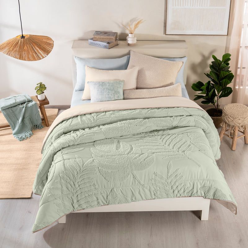 Refresca tu habitación con el Edredón Burgos. Su suave color verde menta transmite tranquilidad, mientras que el diseño.
