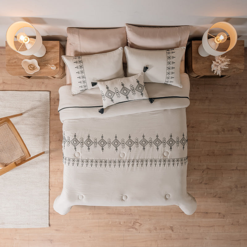 ¡Transforma tu espacio con el Edredón Ixtlán! Con su bordado y diseño minimalista, este edredón combina elegancia y tradición. Su suavidad y estilo único le darán un toque exclusivo a tu habitación.